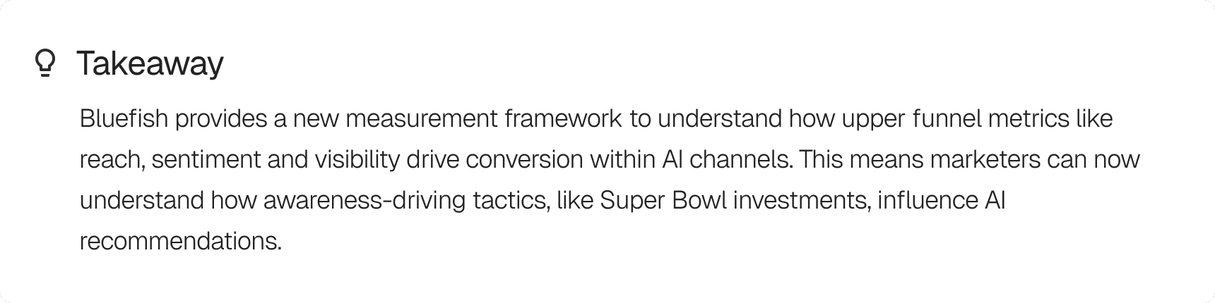 Ready to optimize your brand's AI performance? Contact Bluefish to learn how our platform can optimize your visibility and favorability across AI channels and turn proprietary insights into revenue-driving performance.