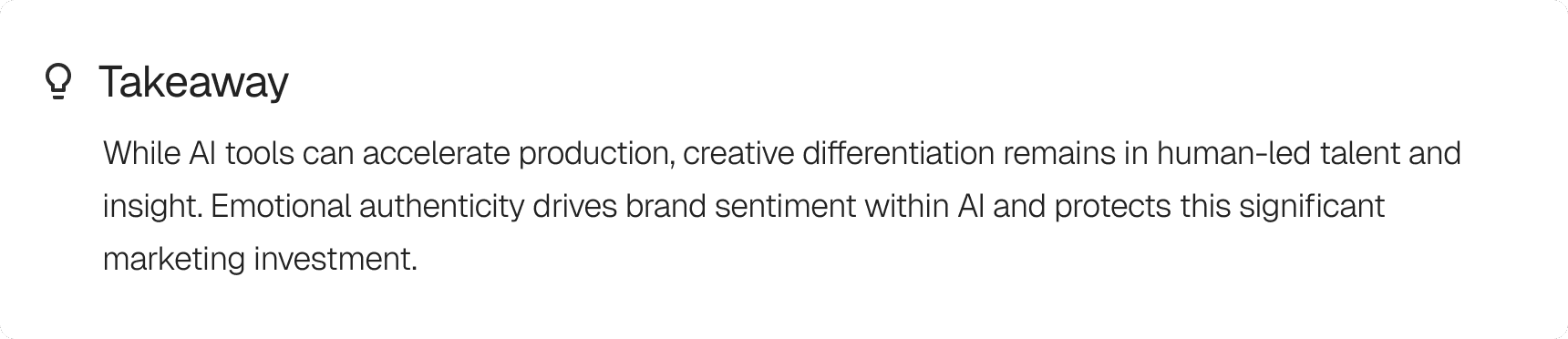 The campaigns that resonated most with both people and AI channels demonstrated distinctive human creativity. Generative AI simply cannot replicate wit, cultural insight and emotional intelligence at scale.