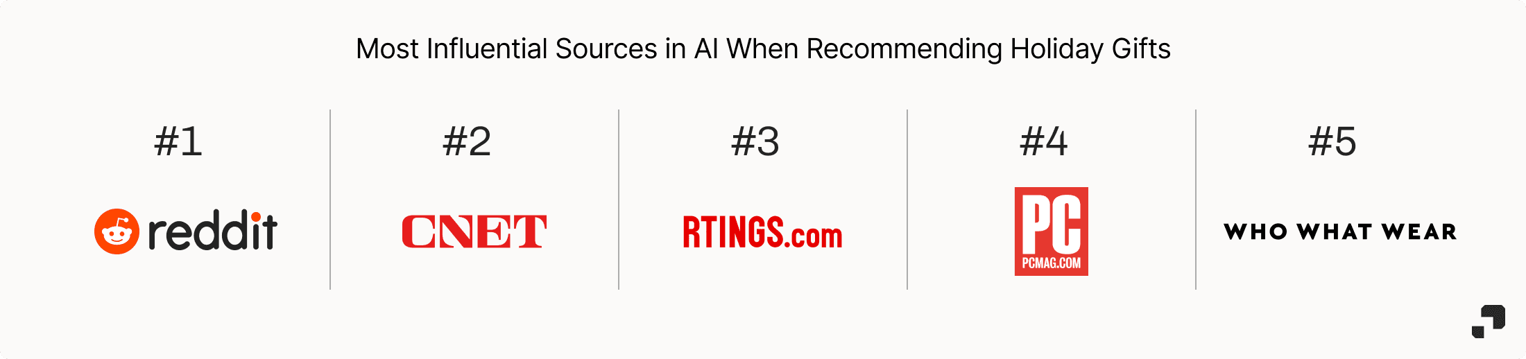 In its place, a more enduring “best gifts” narrative emerged and gained influence as shoppers moved from deal-chasing to thoughtful gifting. AI systems increasingly surfaced: